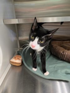 Benji is a charming 1‑year‑old black and white gentleman with a heart as big as his playful spirit. His tuxedo coat makes him look like he’s always dressed for a fancy occasion, but don’t let that fool you—he’s happiest chasing toys, exploring cozy corners, and curling up for naps in sunny spots