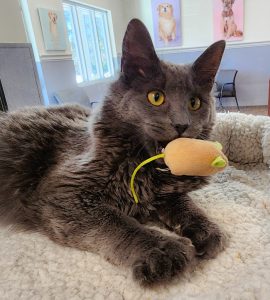 Midnight Rain is an older kitten with a poet’s name and a heart full of sunshine. She sprinkles magic into every room she enters and is ready to find a new family who will shower her with love.