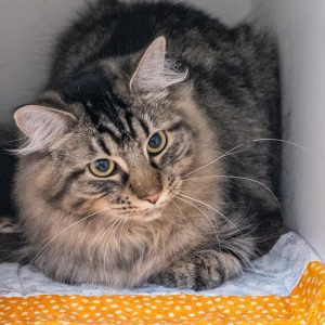 This 8 month old kitten is a little shy – he just needs a bit of patience and love to truly shine. At first, he may hang back and observe the world from a safe distance, but once he starts to feel comfortable, his sweet and gentle personality comes through.