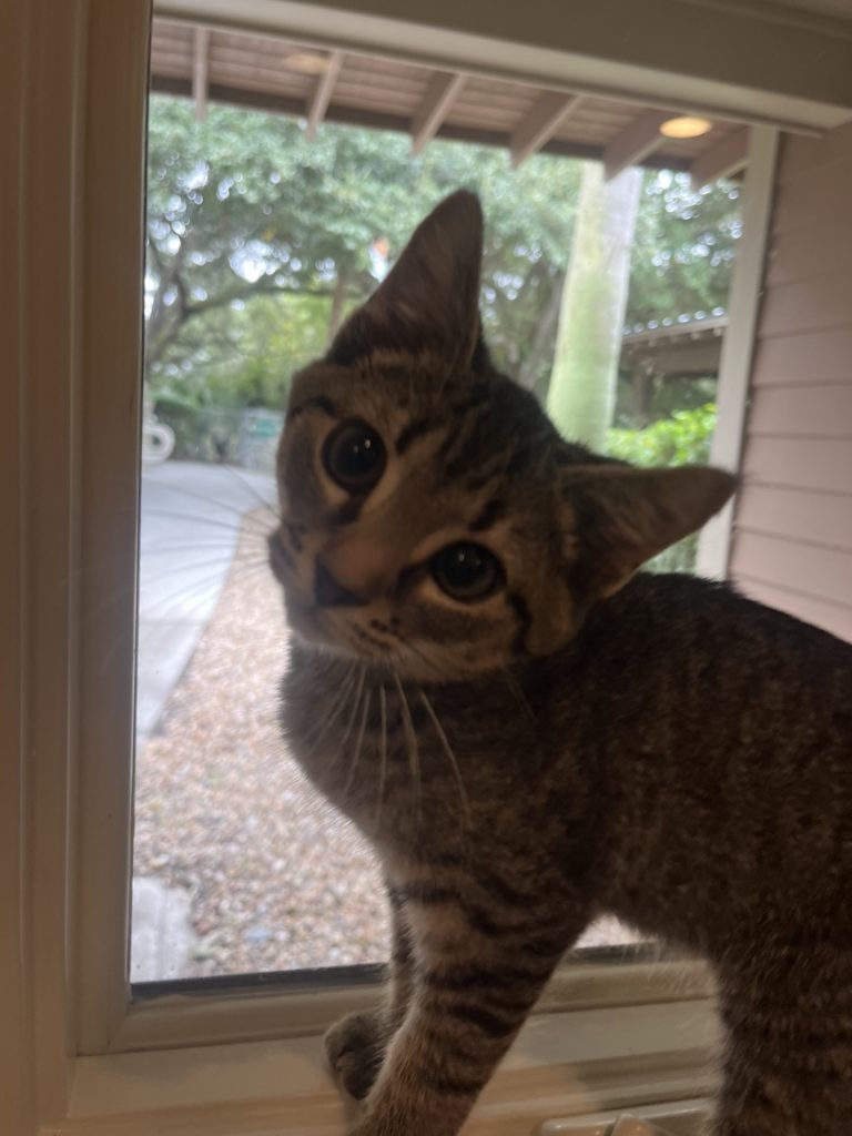 At just 3 months old, this brown tabby is full of energy, curiosity, and charm. Chevron loves to play, explore, and make new friends — whether it’s chasing a toy or pouncing after a feather. When playtime is over, he’s ready to curl up and relax by your side.
