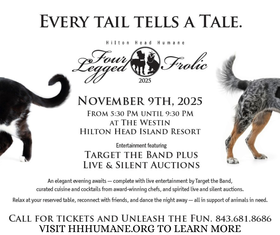 H.H. Humane’s Annual Meeting*: Tuesday, December 2nd at 6PM, The Golf Club at Indigo Run, HHI. *All HHH members are invited to attend the HHH Annual Meeting. If attending, please RSVP at (843) 681-8686 before November 27, 2025.