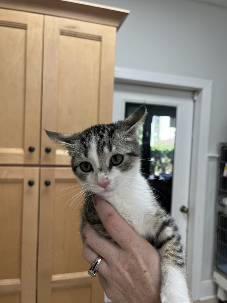 Fanta may not be orange or purple, but this 2-month-old white and grey tabby is 100% cute! Playful, sweet, and full of personality, Fanta is ready to fizz his way right into your heart.