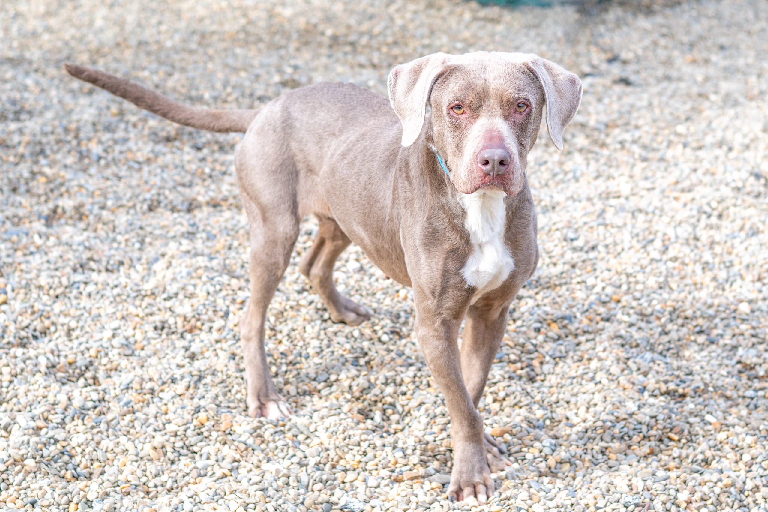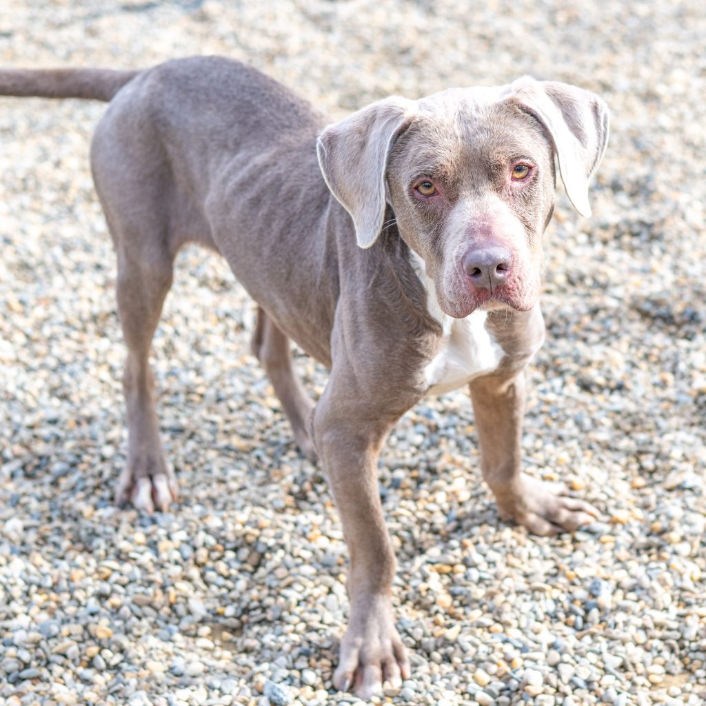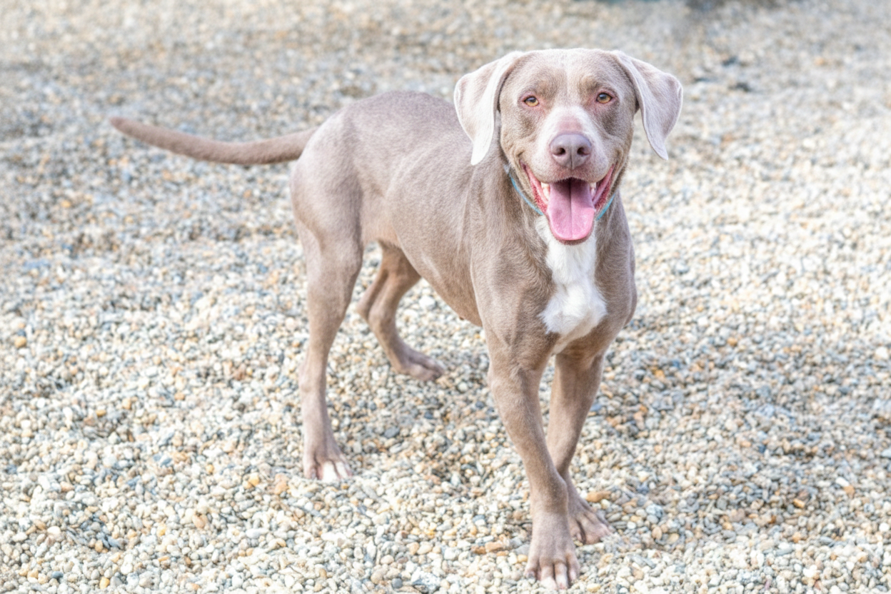 When 7.5-year-old Hazel first arrived, she was a bundle of nerves — timid, unsure, and taking her time to trust. But with a little patience, a lot of love, and (of course) plenty of treats, she’s truly come out of her shell! Now, this Lab mix is showing her playful, goofy side. She loves to run, explore, and enjoy all the good things life has to offer. Hazel can still be a bit aloof at times — she dances to the beat of her own drum — but that’s part of her charm.