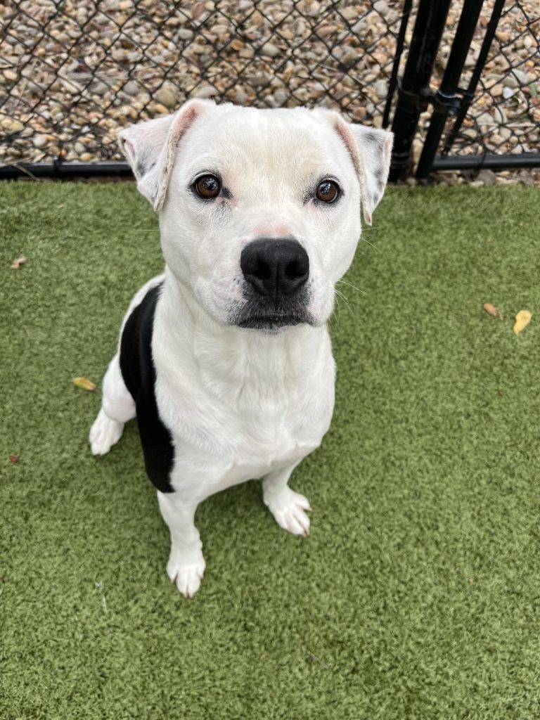Henry is the kind of dog who loves everybody — dogs, cats, kids, you name it! This 2½-year-old lab mix has the biggest heart and the coolest black-and-white spots to match his amazing personality.