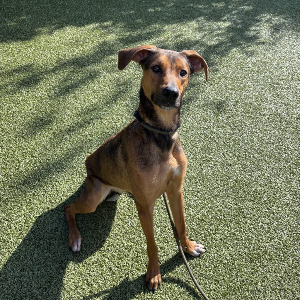 Meet Red, gorgeous female hound mix with the biggest heart and an even bigger zest for life! Red is a sweet, soft-eyed girl who’s ready to fill someone’s home with love and laughter. She’s got that classic hound energy — playful, curious, always up for an adventure — but she balances it perfectly with her gentle, affectionate nature. Whether she’s zooming around the yard, trotting proudly on a walk, or curling up beside you for snuggles, Red does it all with so much joy! She adores people, gives the best tail wags, and carries herself with a goofy charm that’s impossible not to love.