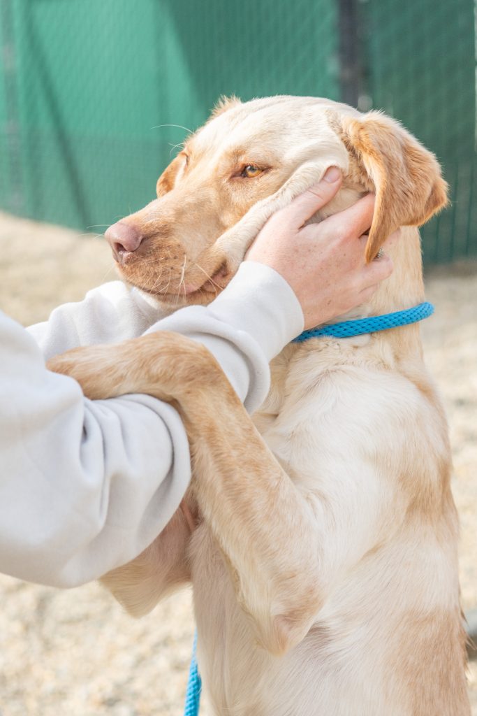 Meet Waylon, a 1.7-year-old male Lab mix who weighs in at a perfect 51 pounds and brings sunshine wherever he goes. Waylon is the definition of a happy, social pup. His sweet, friendly nature makes him instantly lovable, and his playful spirit keeps everyone smiling. Whether he’s chasing after a ball with laser-focus or romping around with his canine buddies, he’s always ready for fun. Out on walks, Waylon is a joy—he moves along politely on the leash, taking in the world with curiosity and those incredibly soft, soulful eyes. His gorgeous yellow coat is as silky as it looks, and his fun but gentle demeanor makes him a wonderful companion for just about any home. If you’re looking for a loyal, affectionate, and fun-loving dog to brighten your days, Waylon is ready to be your new best friend.